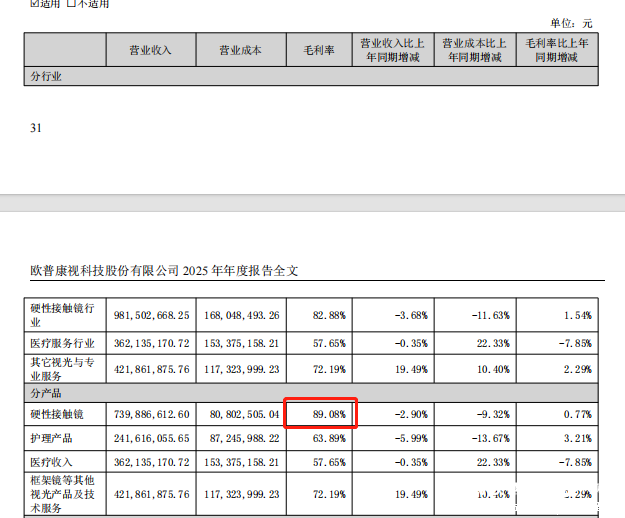 报告期内,硬性接触镜产品的营业收入为7.39亿元,同比下降2.90%。这是继2024年该业务收入首次出现下滑后,连续第二年陷入负增长。
